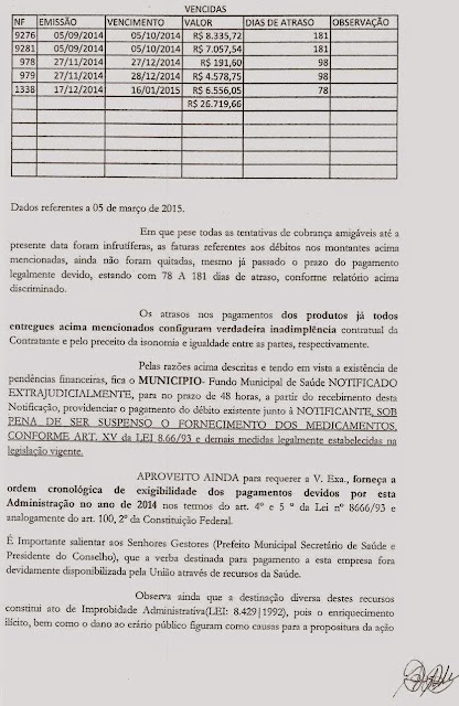 disso protocolou uma Notificação Extrajudicial nº 17/2015, junto ao Ministério